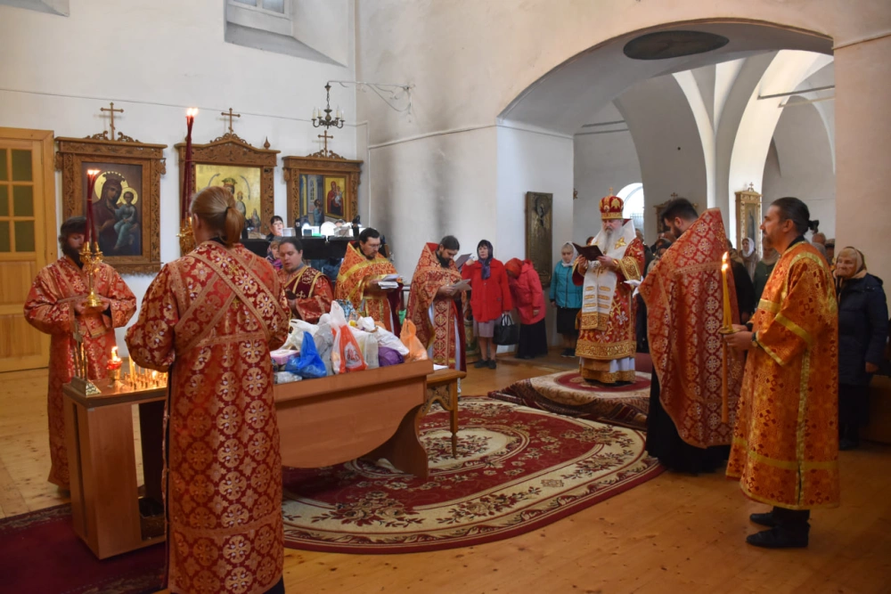 По окончании Божественной литургии епископ Сергий и духовенство совершили панихиду, за которой сугубо молились об упокоении душ ― «Приснопа́мятных вожде́й и во́инов за ве́ру и Оте́чество наше на по́ли бра́ни жизни своя положи́вших, от ран и гла́да сконча́вшихся, в плене́нии и го́рьких рабо́тах неви́нно уму́ченных и убие́нных и всех Побе́ды ра́ди потруди́вшихся, их же имена Ты, Господи, сам знаеши».