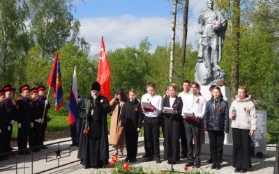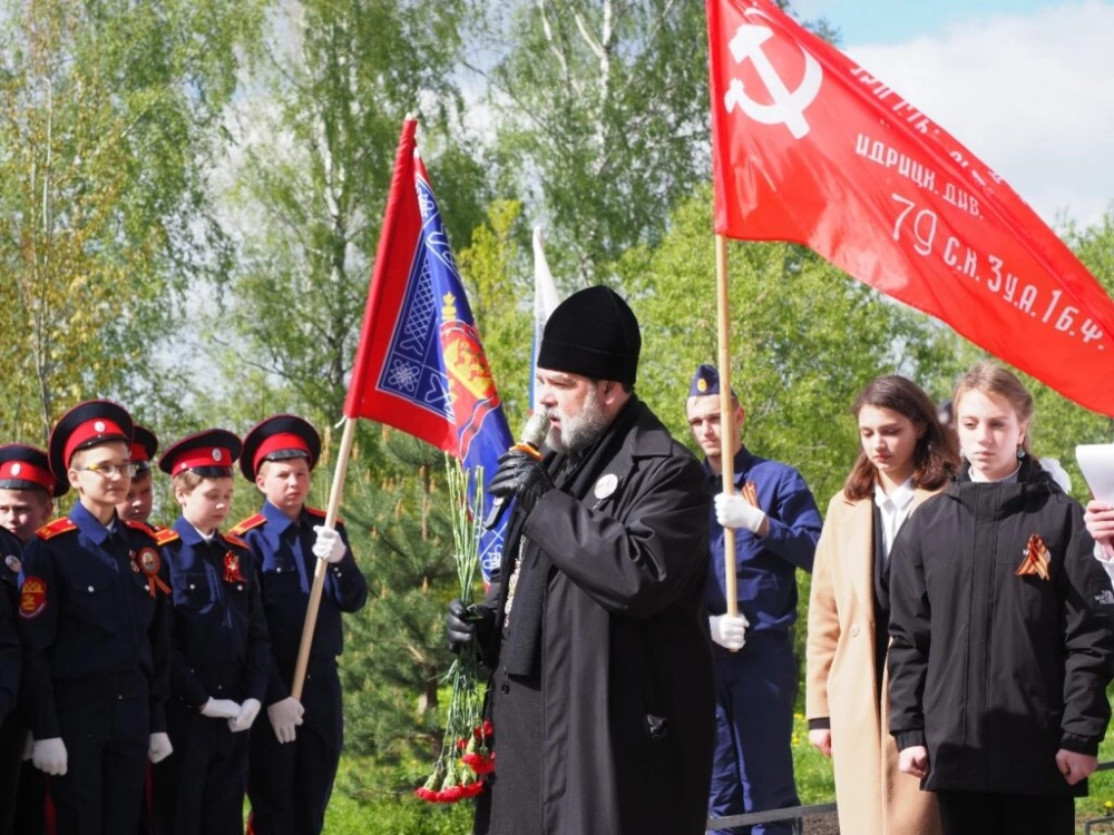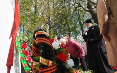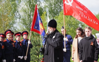 Игумен Александр обратился ко всем присутствующим с пастырским словом, поздравил всех с Днем Победы и призвал на всех Божие благословение.