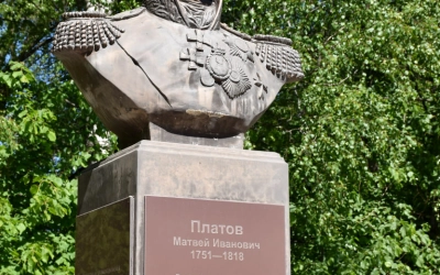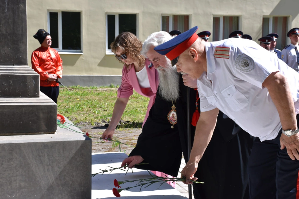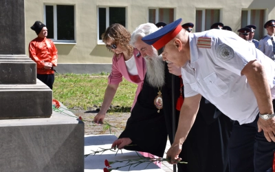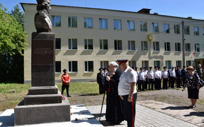 Отчетный круг начался с построения представителей казачества и возложения цветов к памятнику М.И. Платову на территории учебного заведения.