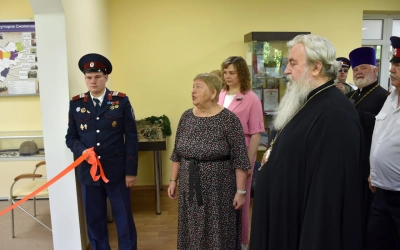 Затем Директор СКИПТБ Надежда Сергеевна Коржикова провела торжественное открытие нового зала музея «История казачества на Смоленщине».