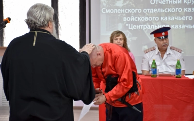 Мероприятие продолжилось в актовом зале Вяземского казачьего института, где перед выборными казаками из казачьих обществ региона был зачитан доклад о проделанной работе. В ходе круга также были приведены к Присяге новые члены Смоленского отдельского казачьего общества.