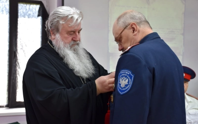 Особо потрудившиеся казаки были отмечены Епархиальными наградами, которые вручил Вяземский архипастырь: