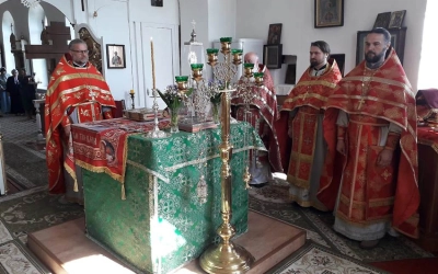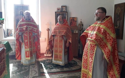 Божественную литургию возглавил благочинный Вяземского городского округа протоиерей Валерий Калинин в сослужении городского духовенства.