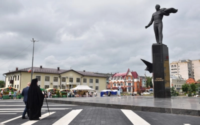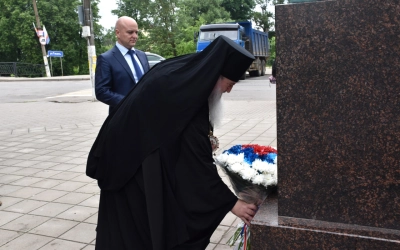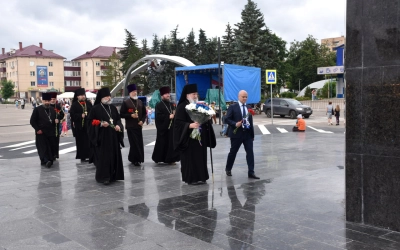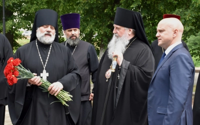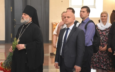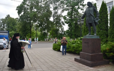 По окончании Литургии правящий архиерей Вяземской епархии, Владимир Вячеславович и духовенство возложили цветы к памятникам Петру Великому и Юрию Алексеевичу Гагарину.