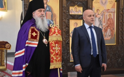 Разделить радость соборной молитвы вместе с Вяземским архипастырем и духовенством собрались исполняющий полномочия Главы муниципального образования "Гагаринский район" Смоленской области Владимир Вячеславович Грунин, многочисленные прихожане Благовещенского собора, жители и гости города Гагарин.
