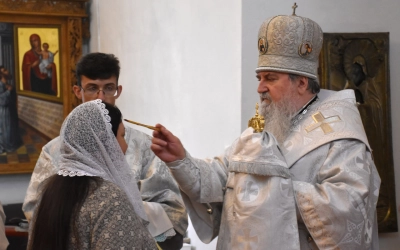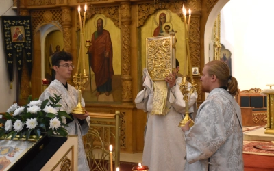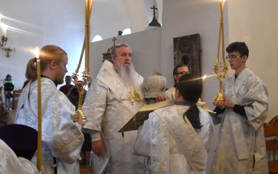 В продолжение Всенощного бдения Преосвященнейший Владыка Сергий совершил помазание освященным елеем и преподал архипастырское благословение духовенству и мирянам.