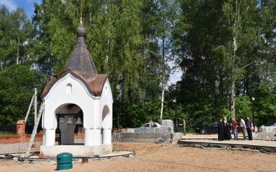 Преосвященнейшего архипастыря сопровождали благочинный Гагаринского округа игумен Александр (Карпиков), ктитор и руководитель строительных работ храмового комплекса Сергей Владимирович Назаркин с помощниками.
