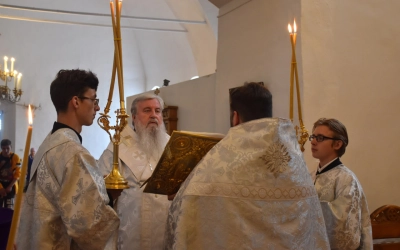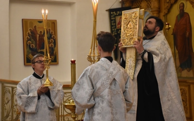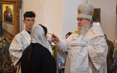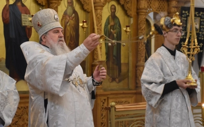 В продолжение Всенощного бдения Преосвященнейший Владыка Сергий совершил помазание освященным елеем и преподал архипастырское благословение духовенству и мирянам.