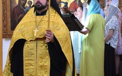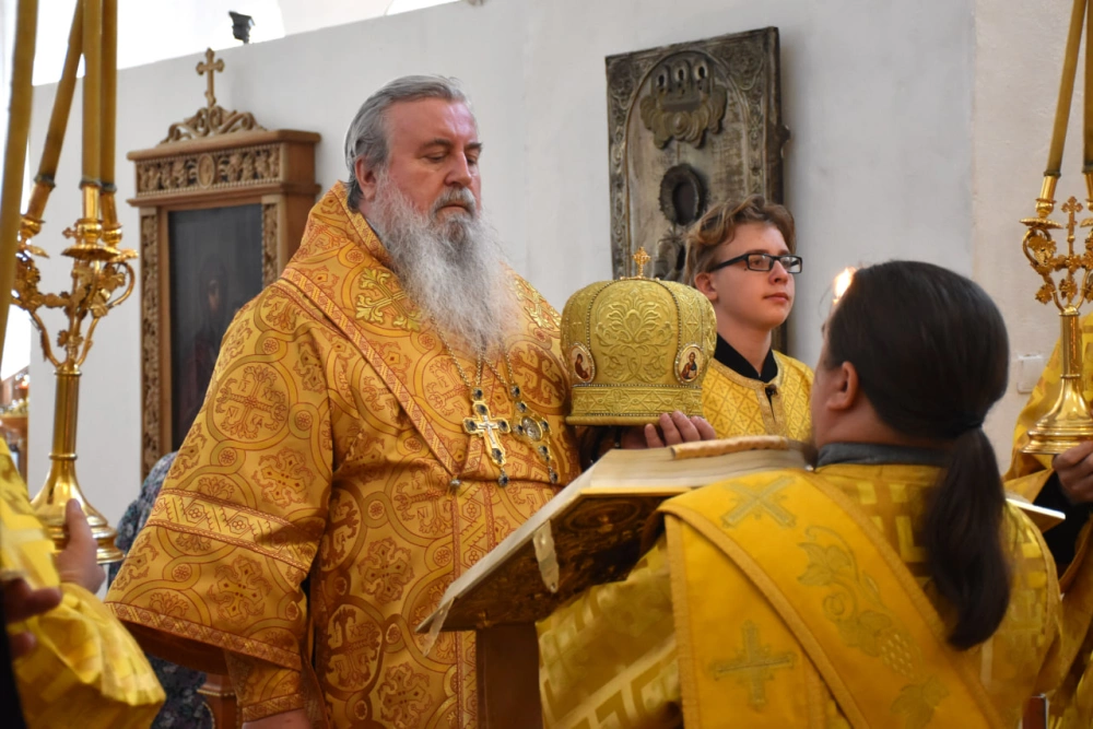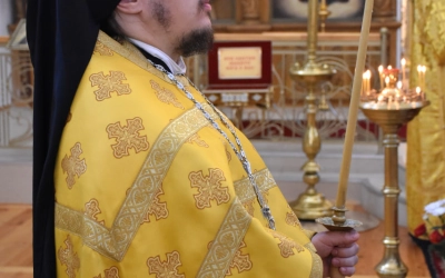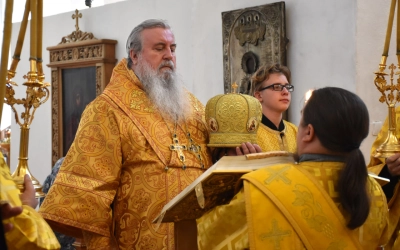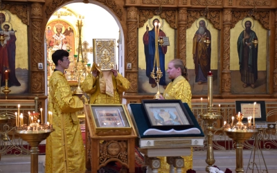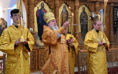 Его Преосвященству сослужили клирики собора: иеромонах Симеон (Берёзкин) и иеромонах Дамиан (Попков).