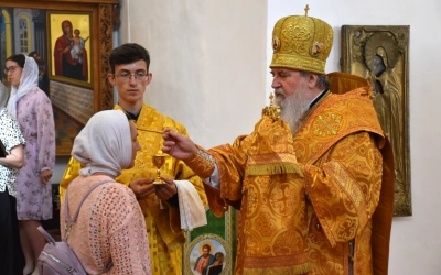 В продолжение Всенощного бдения Преосвященнейший Владыка Сергий совершил помазание освященным елеем и преподал архипастырское благословение духовенству и мирянам.
