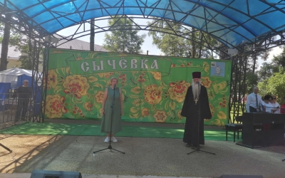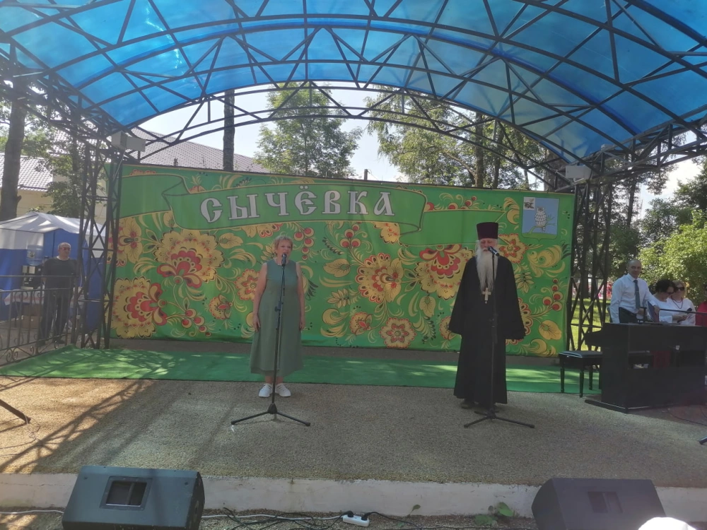 Отец Анатолий поздравил горожан от имени епископа Вяземского и Гагаринского Сергия, и пожелал мира, добра и процветания городу Сычевка.