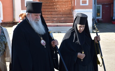 Разделить радость соборной молитвы вместе с архипастырем в престольный праздник собрались настоятельница монастыря игумения Лаврентия (Павлюченкова) с сестрами святой обители, гости и прихожане монастыря.