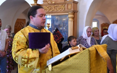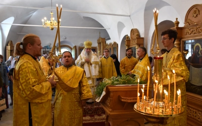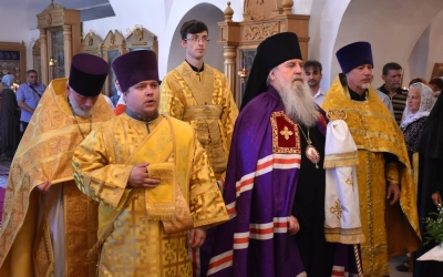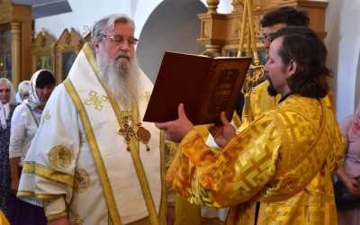 Его Преосвященству сослужили священники монастыря: протоиерей Николай Бабюк и иерей Владимир Покатов.