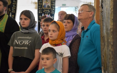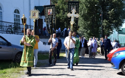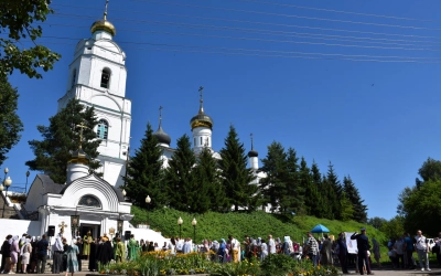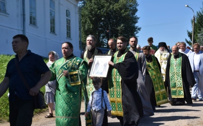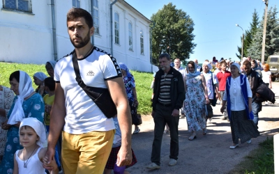 В завершение Божественной литургии епископ Сергий и все молящиеся совершили Крестный ход к часовне в честь преподобного Аркадия Вяземского, где состоялось праздничное мероприятие "Всероссийский парад семьи", приуроченное ко дню памяти сятых благоверных князей Петра и Февронии Муромских и Дню семьи, любви и верности.