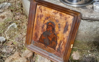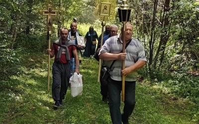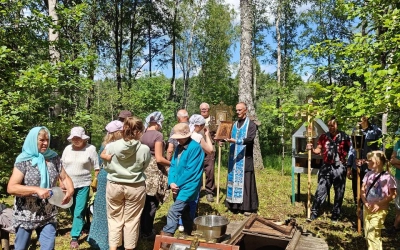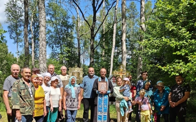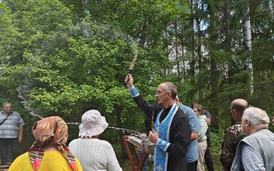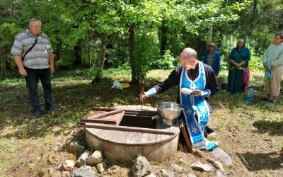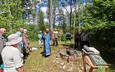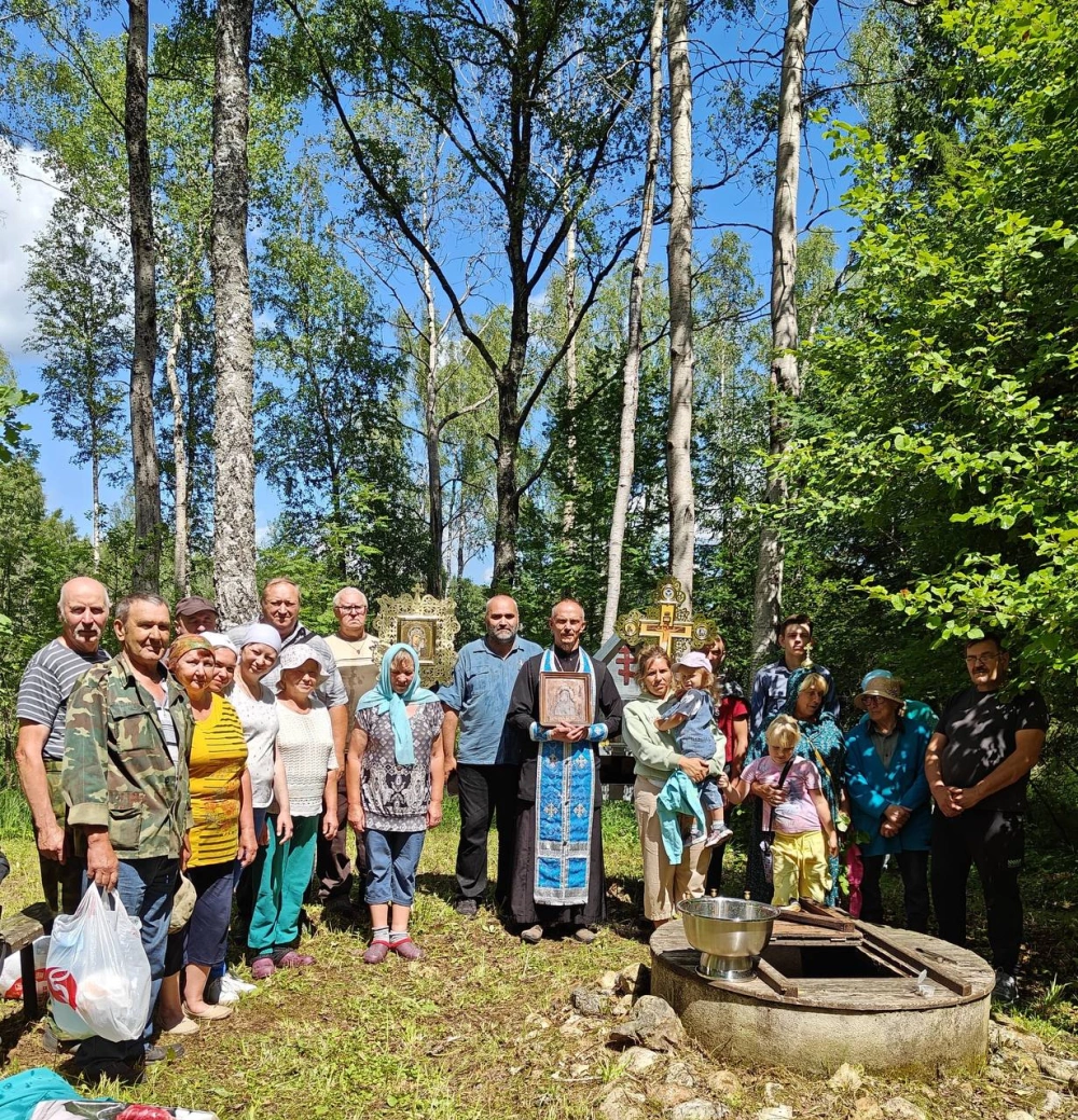 У источника участники Крестного хода, отслужили праздничный водосвятный молебен у старинной иконы Владимирской Божией Матери, в завершении богослужения все присутствующие смогли к ней приложиться и попросить о помощи.