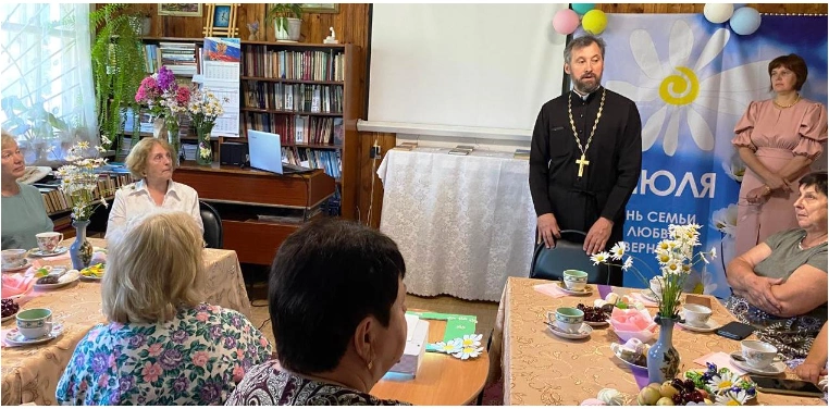 Священник тепло поздравил собравшихся с Всероссийским Днем семьи, любви и верности, рассказал историю любви святых благоверных князей Петра и Февронии Муромских, познакомил с житием святой благоверной Иулиании, княгини Вяземской, которые для всех нас являются образцами истинной любви и верности в семейных отношениях, примерами смирения и терпения. Участники мероприятия услышали добрые пожелания семейного счастья, здоровья, мира и благополучия.