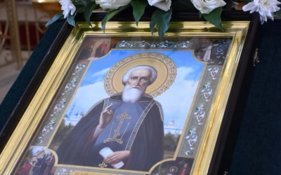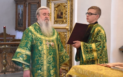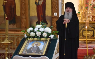 В заключение Божественной литургии епископ Сергий совершил славление и молитву ко преподобному Сергию Радонежскому, а также обратился к молящимся с архипастырским словом, в котором поздравил всех с престольным праздником кафедрального собора.