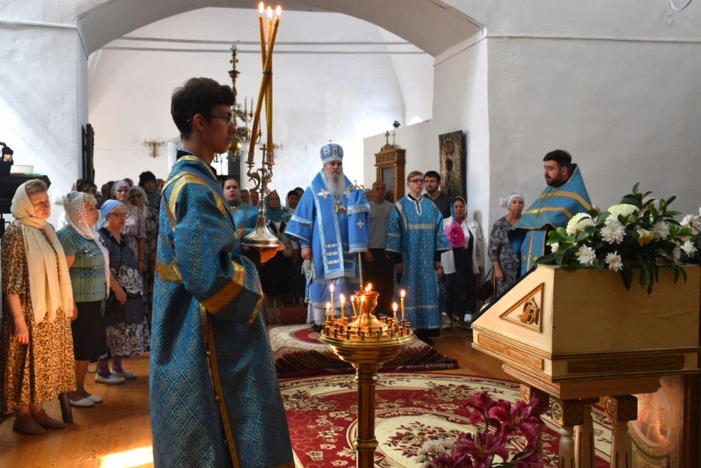 В заключение Божественной литургии епископ Сергий совершил славление перед Казанским образом Пресвятой Богородицы, а также обратился к молящимся с архипастырским словом.
