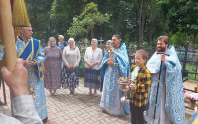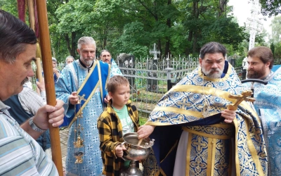 По заамвонной молитве был совершён Крестный ход, во время которого были вознесены молитвы о упокоении игумена Никона (Воробьева) и других почивших священнослужителей покоящихся за алтарем.