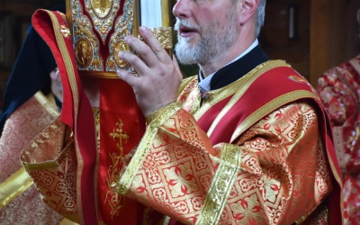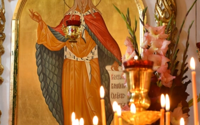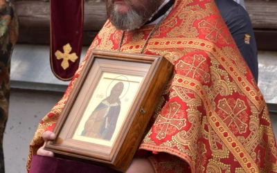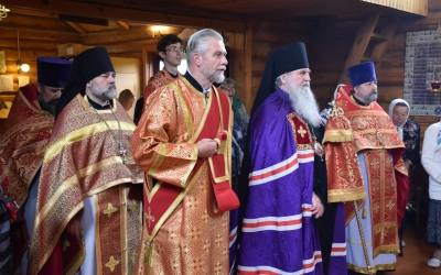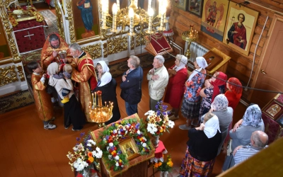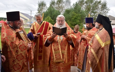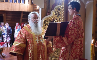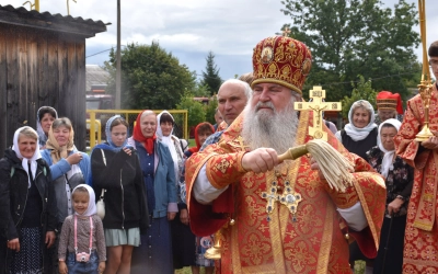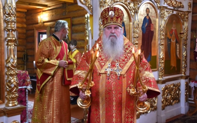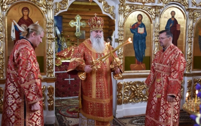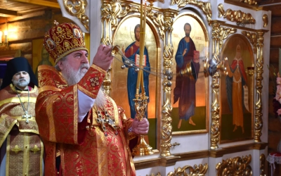 В заключение Божественной литургии епископ Сергий возглавил Крестный ход вокруг храма, а также совершил молебное пение, славление и молитву ко пророку Божию Илие.
