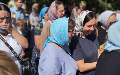 За Литургией молились прихожане Одигитриевского храма, поломники из городов Москвы, Калуги, Смоленска, Вязьмы, Гагарина - всего около 100 человек.