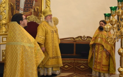 Сегодня вечером, в канун праздника Преображения Господа Бога и Спаса нашего Иисуса Христа, епископ Вяземский и Гагаринский Сергий совершит Всенощное бдение в Свято-Троицком кафедральном соборе г. Вязьмы. Начало богослужения - в 17.00.