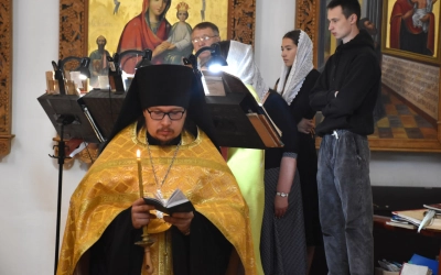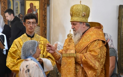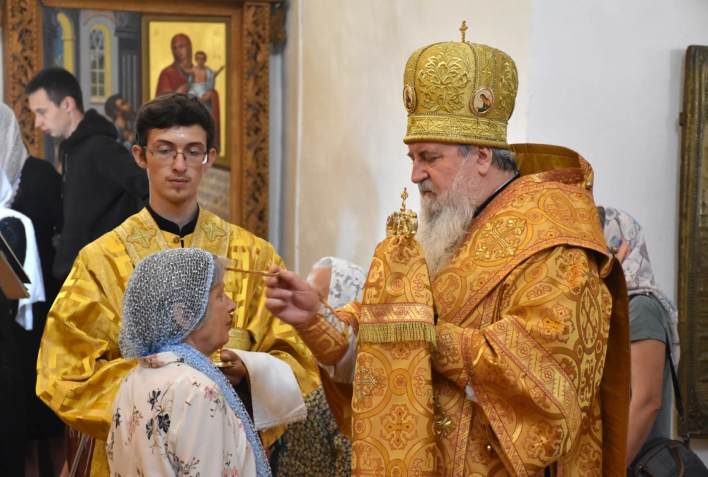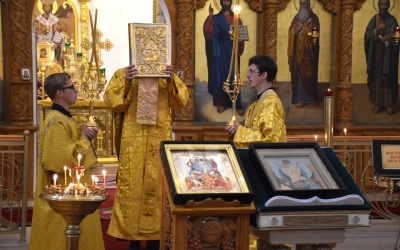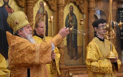 В продолжение Всенощного бдения Преосвященнейший Владыка Сергий совершил помазание освященным елеем и преподал архипастырское благословение духовенству и мирянам.