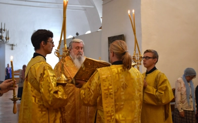 24 августа 2024 года, в канун Недели 9-й по Пятидесятнице, дня памяти мучеников Фотия и Аникиты и многих с ними, епископ Вяземский и Гагаринский Сергий совершил Всенощное бдение в Свято-Троицком кафедральном соборе г. Вязьмы.