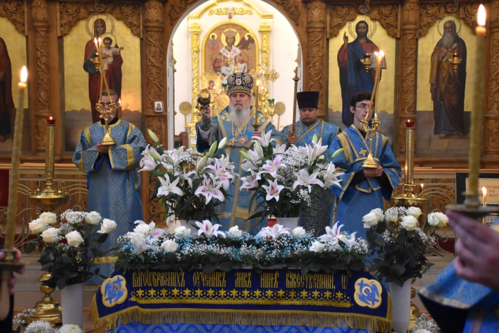 27 августа 2024 года, в канун праздника Успения Пресвятой Владычицы нашей Богородицы и Приснодевы Марии, епископ Вяземский и Гагаринский Сергий совершил Всенощное бдение в Свято-Троицком кафедральном соборе г. Вязьмы.