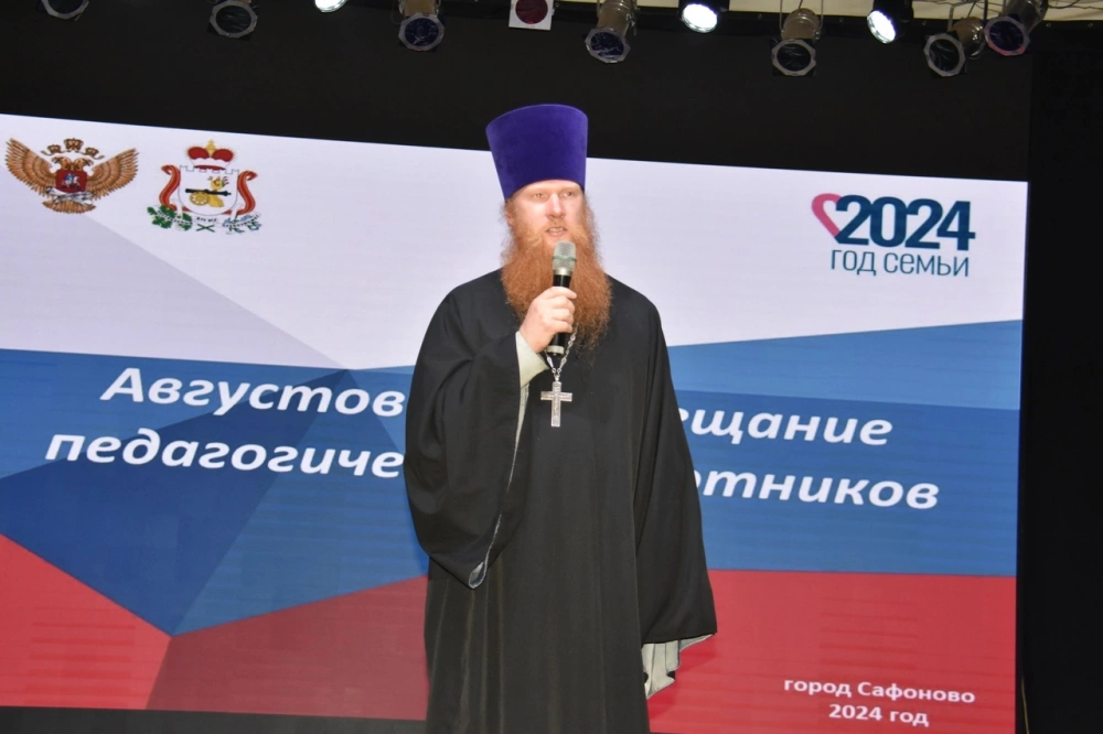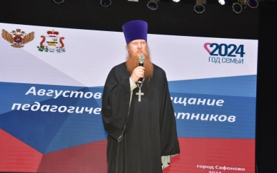 Обращаясь со словами приветствия ко всем участникам совещания, благочинный Сафоновкого округа иерей Сергий Чайкин отметил, что служение педагога - это тяжёлый и жертвенный труд. И именно этот великий труд создаёт будущее нашей страны. Также отец Сергий пожелал всем, кто так или иначе связан с образованием подрастающего поколения, мудрости, терпения и покрова Божией Матери.