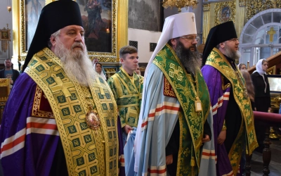 В сослужении многочисленного духовенства Высокопреосвященнейший митрополит Исидор, Преосвященнейший епископ Сергий и Преосвященнейший епископ Мелетий возглавили молебен.