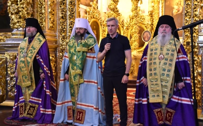 Василий Николаевич Анохин также обратился к духовенству и мирянам с приветственным словом, призвав молиться преподобной Ефросинии Полоцкой о том, чтобы она защитила народ России и Беларуси, бойцов, находящихся на фронте и мирных жителей, пострадавших от боевых действий.