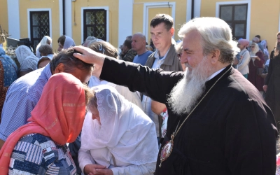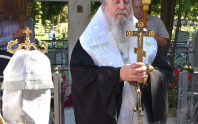 В завершение богослужения архиереи вместе с духовенством и мирянами совершили Крестный ход к могиле игумена Никона, где возглавили Панихиду по приснопоминаемому.