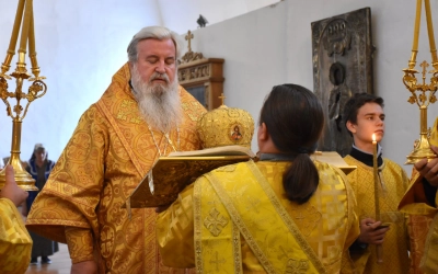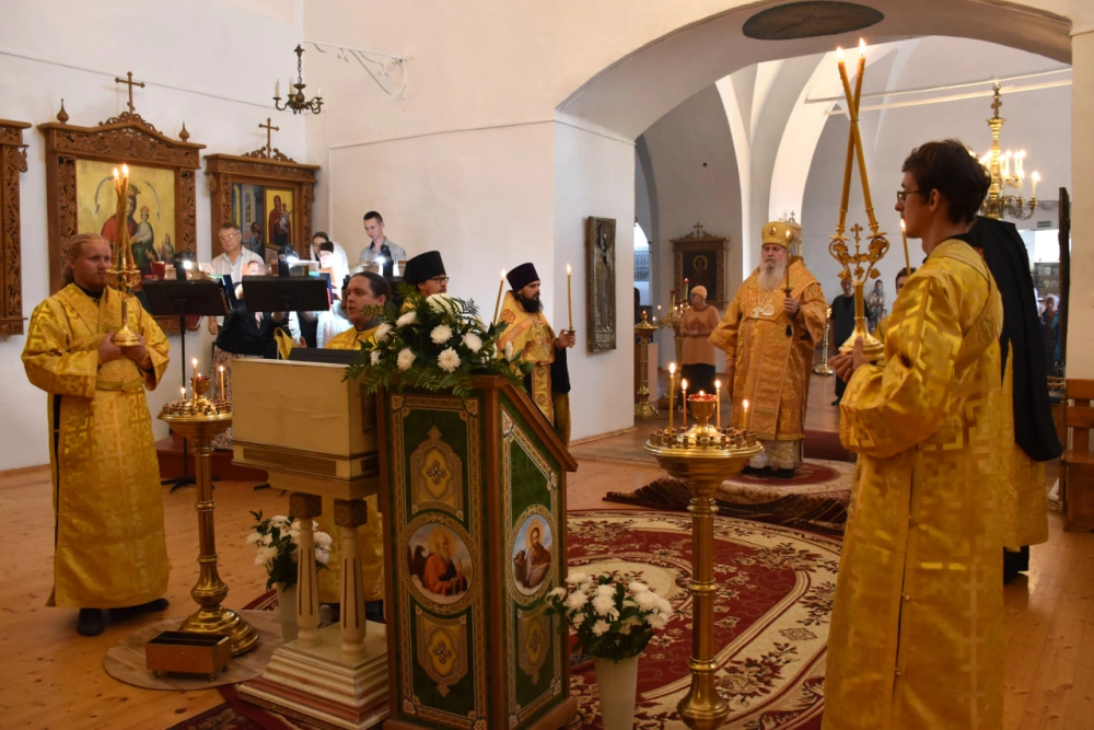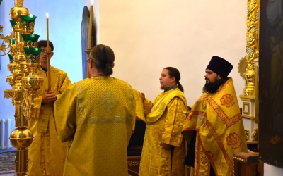 Вечером 7 сентября 2024 года, в канун Недели 11-й по Пятидесятнице, праздника Сретения Владимирской иконы Пресвятой Богородицы, епископ Вяземский и Гагаринский Сергий совершил Всенощное бдение в Свято-Троицком кафедральном соборе г. Вязьмы.