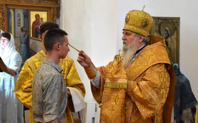 В продолжение Всенощного бдения Преосвященнейший Владыка Сергий совершил помазание освященным елеем и преподал архипастырское благословение духовенству и мирянам.