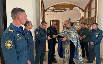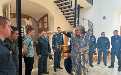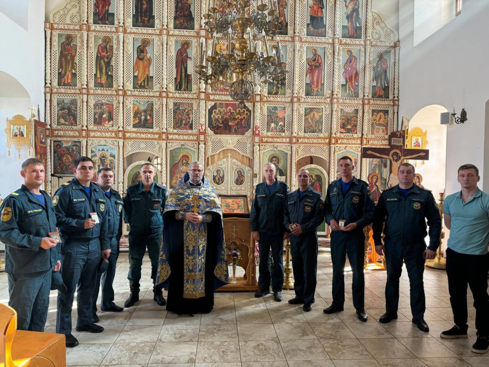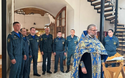 По окончании Божественной литургии был отслужен молебен перед праздничным образом. За богослужением молился личный состав Пожарно-Спасательной части №12 ФГКУ "ОФПС по Смоленской области" г. Вязьма.
