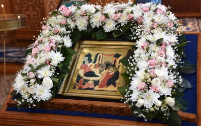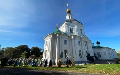 В заключение Божественной литургии епископ Вяземский и Гагаринский Сергий возглавил Крестный ход, совершил славление престольному празднику, а также обратился с Архипастырским словом ко всем участникам богослужения, после чего призвал на всех Божие благословение.