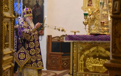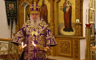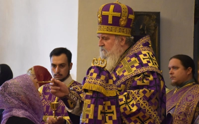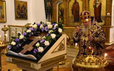После Великого славословия Вяземский архипастырь совершил чин Воздвижения Креста.