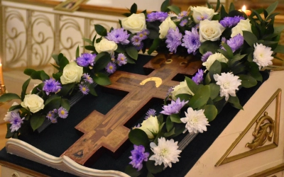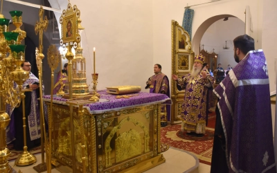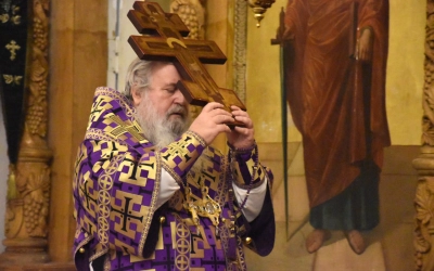 26 сентября 2024 года, в канун праздника Воздвижения Честного и Животворящего Креста Господня, епископ Вяземский и Гагаринский Сергий совершил Всенощное бдение с чином Воздвижения Креста в Свято-Троицком кафедральном соборе г. Вязьмы.