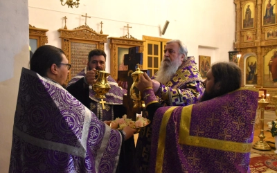 В продолжение богослужения Преосвященнейший Владыка Сергий совершил помазание освященным елеем и преподал архипастырское благословение духовенству и мирянам.