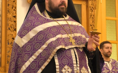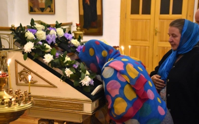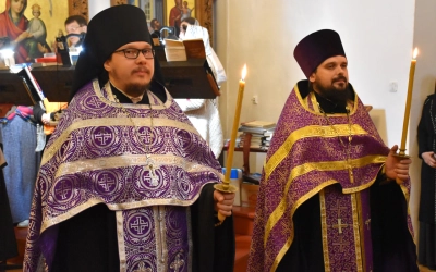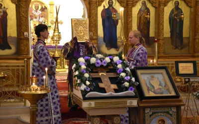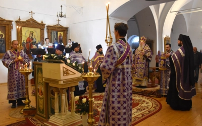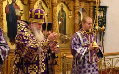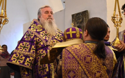 В продолжение Всенощного бдения Преосвященнейший Владыка Сергий совершил помазание освященным елеем и преподал архипастырское благословение духовенству и мирянам.