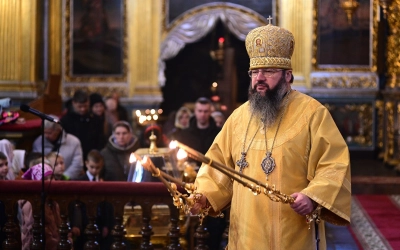 После чтения Святого Евангелия митрополит Исидор обратился к молящимся со словами проповеди.