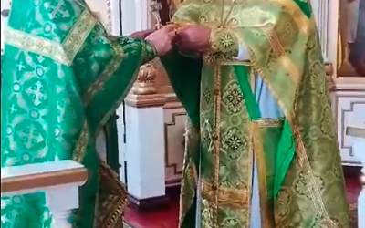 Настоятель поздравил духовенство и прихожан с праздником, а затем по благословению Правящего архиерея митрополита Смоленского и Дорогобужского Исидора передал часть мощей прп. Макария Алтайского протоиерею Валерию для постоянного пребывания в храме Преображения Господня г. Вязьмы, в котором будущий просветитель Алтайского края был крещен в младенчестве.