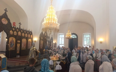 Во время богослужения были совершены молитвы о мире и Святой Руси. Пред иконой Пресвятой Богородицы был совершен молебен.