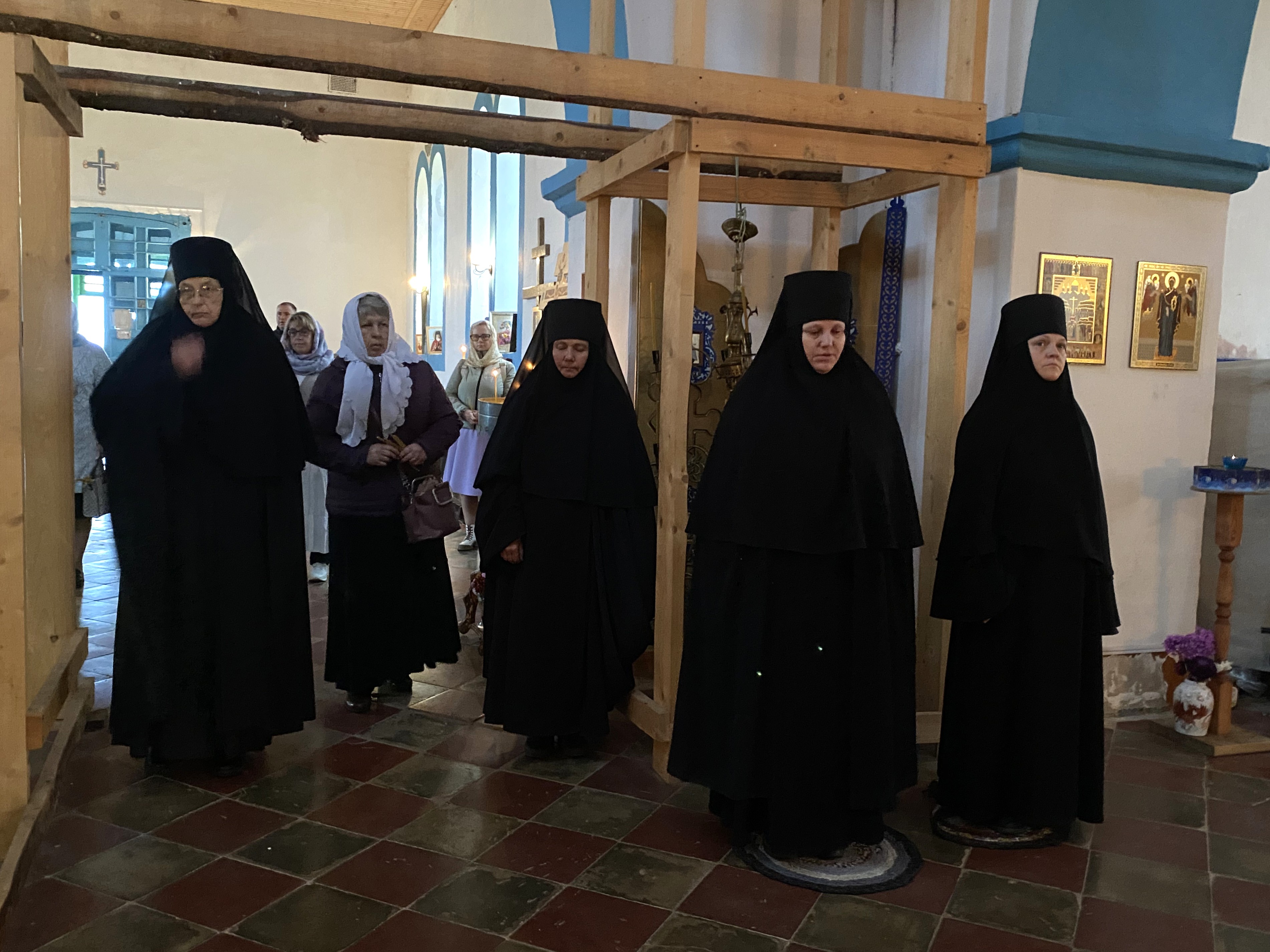 За богослужением молились исполняющая обязанности игумении этого монастыря назначена монахиня Руфь (Ситкина), сестры женской монашеской общины при храме Архангела Михаила села Зарубинки, паломники.