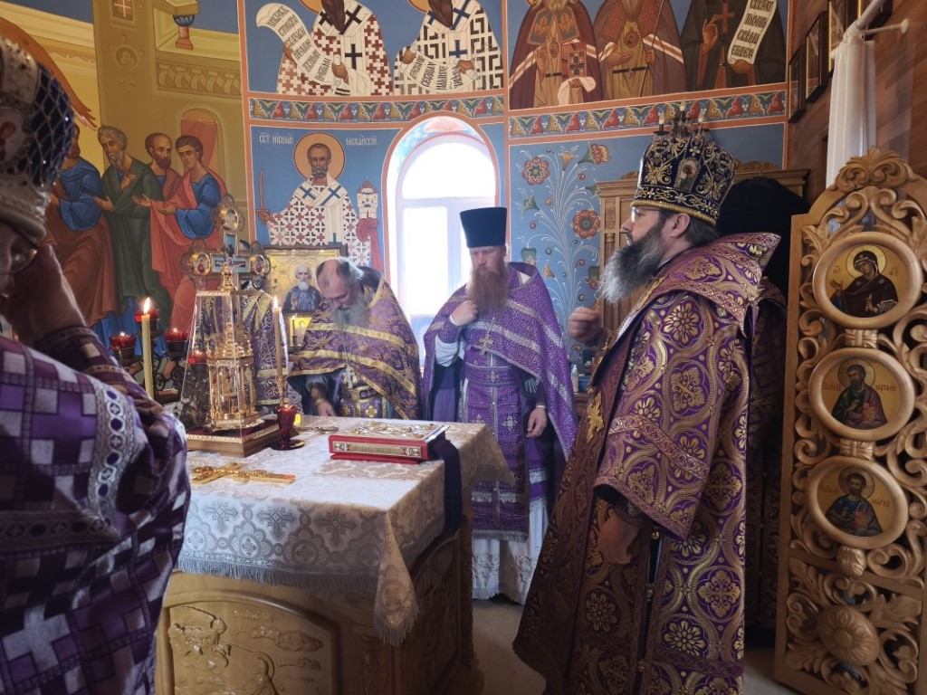4 октября 2025 года, в субботу по Воздвижении, в отдание праздника Воздвижения Животворящего Креста Господня, митрополит Смоленский и Дорогобужский Исидор совершил Божественную литургию в храме Вознесения Господня в д. Рыбки Сафоновского района.