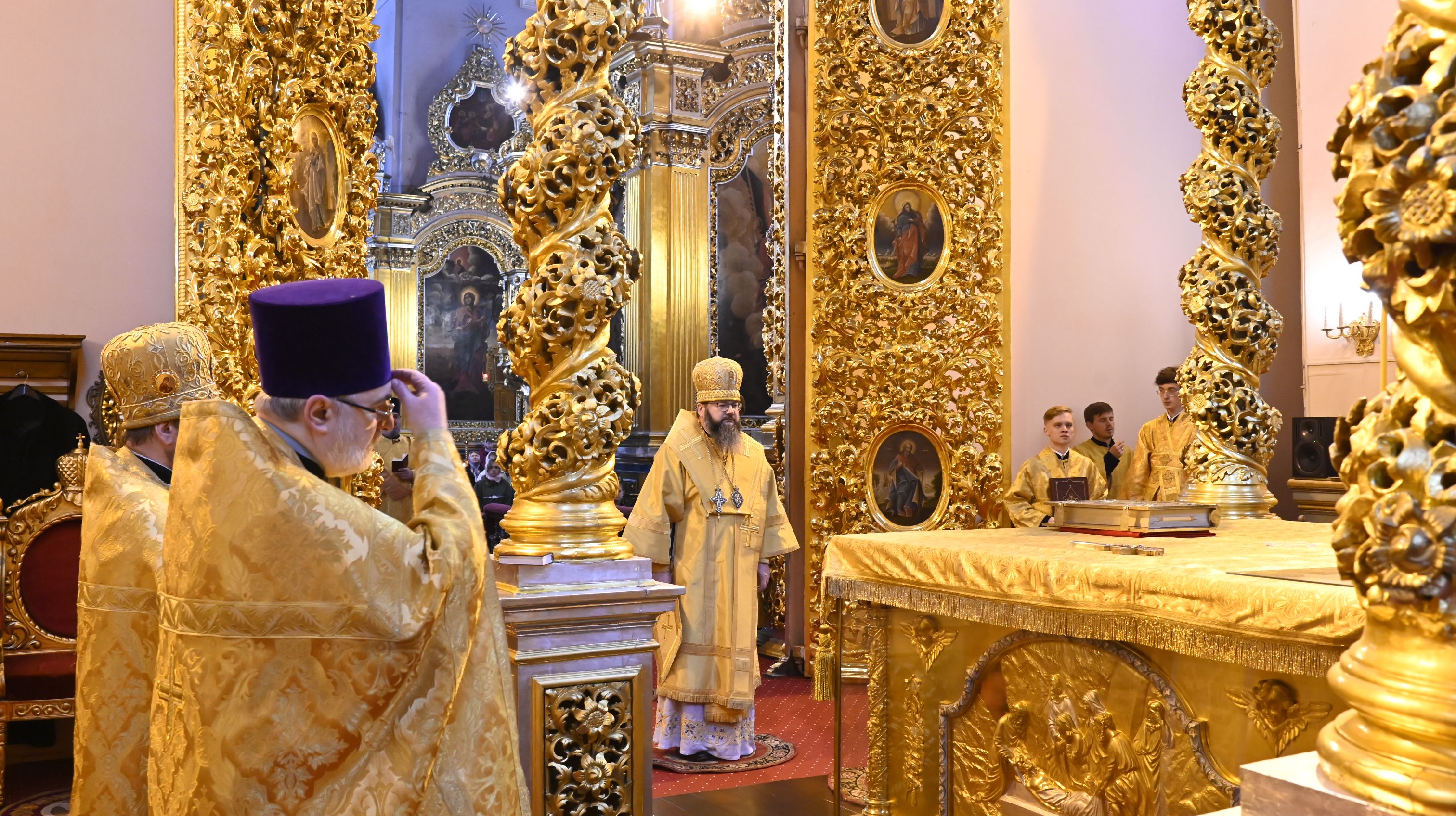 Его Высокопреосвященству сослужили клирики Успенского кафедрального собора.