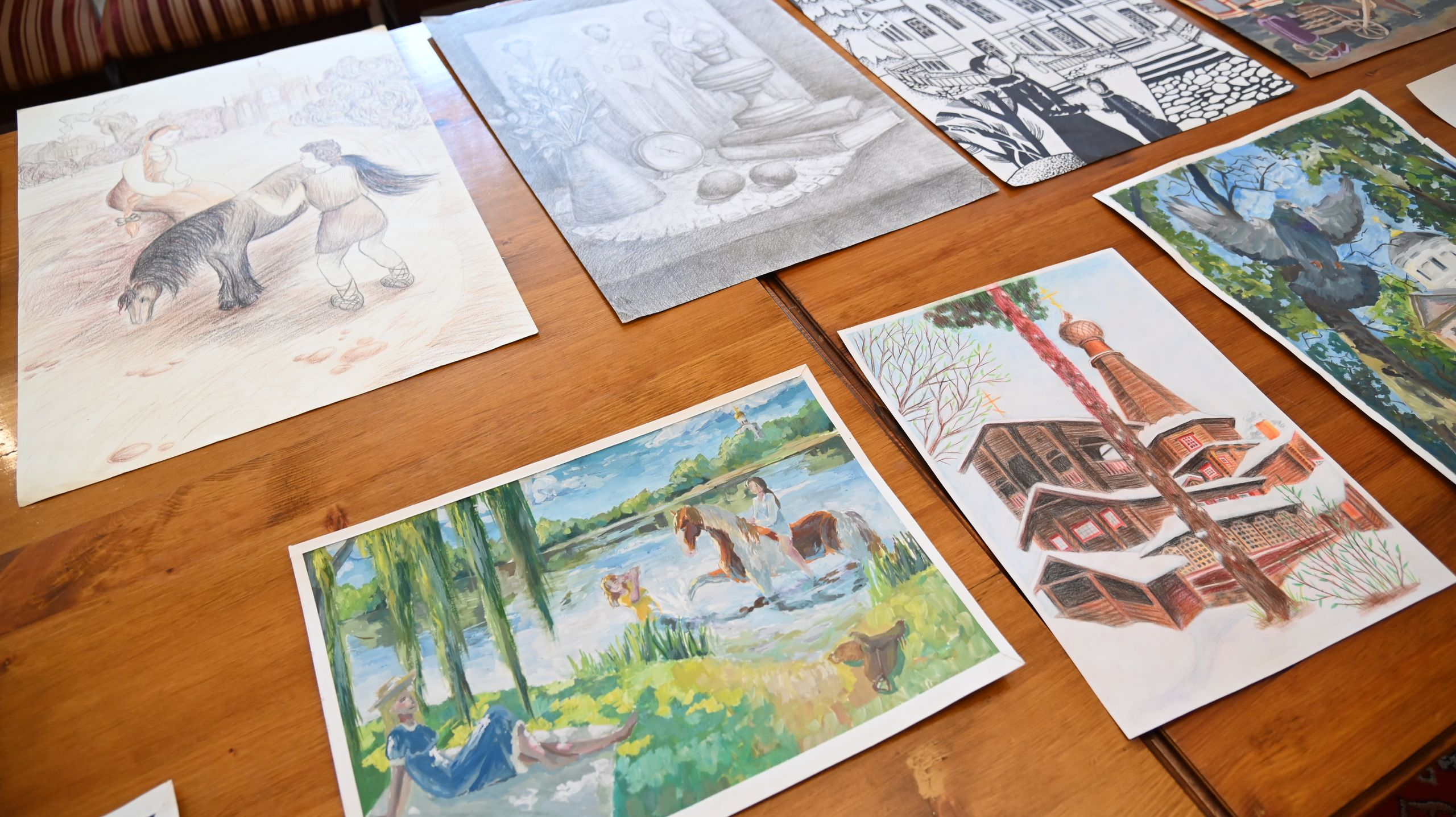 2 место: Морозова Ефросиния (13 лет) «Любимый храм» и Зарянкина Елизавета (15 лет) «Моя деревня. Возрождение».