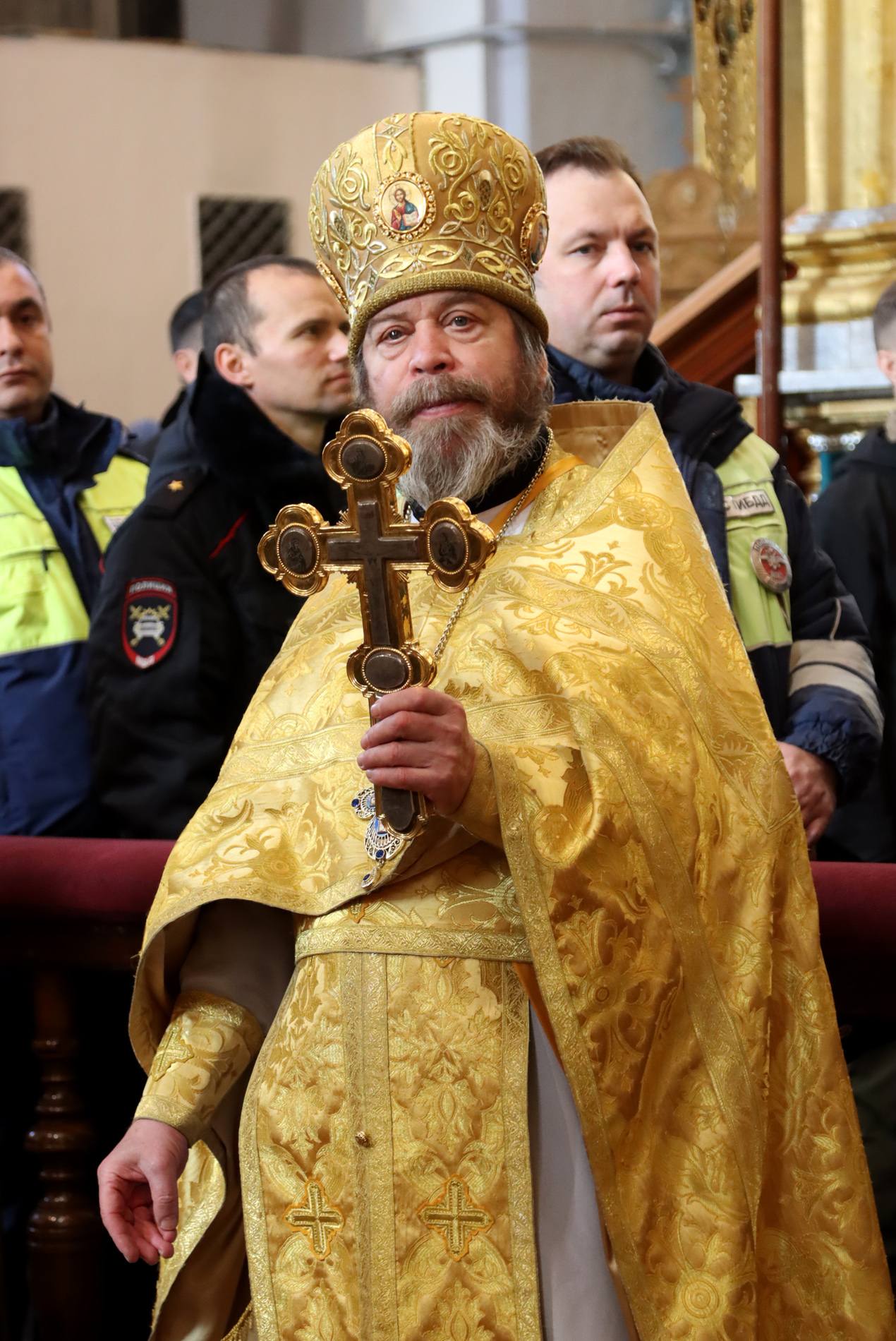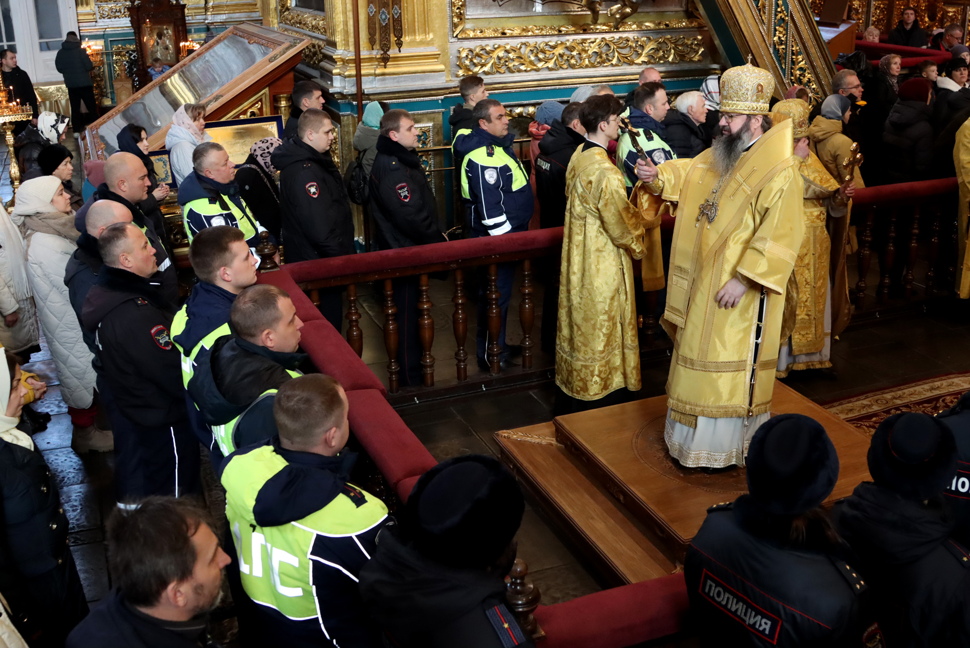 А сегодня мы все, прихожане, искренне желаем нашим сотрудникам полиции здесь собравшимся и тем, которые сейчас на дорогах несут своё многотрудное служение Отечеству и ближним. Здравия, благополучия, пусть всегда помощь Божия, дорогие сотрудники, пребывает с вами. И вы являетесь нашими надёжными помощниками, живущих в наших городах и сёлах. Пусть всегда всем вам, дорогие сотрудники полиции, сопутствует эта помощь Божия и удача в вашем служении Отечеству».