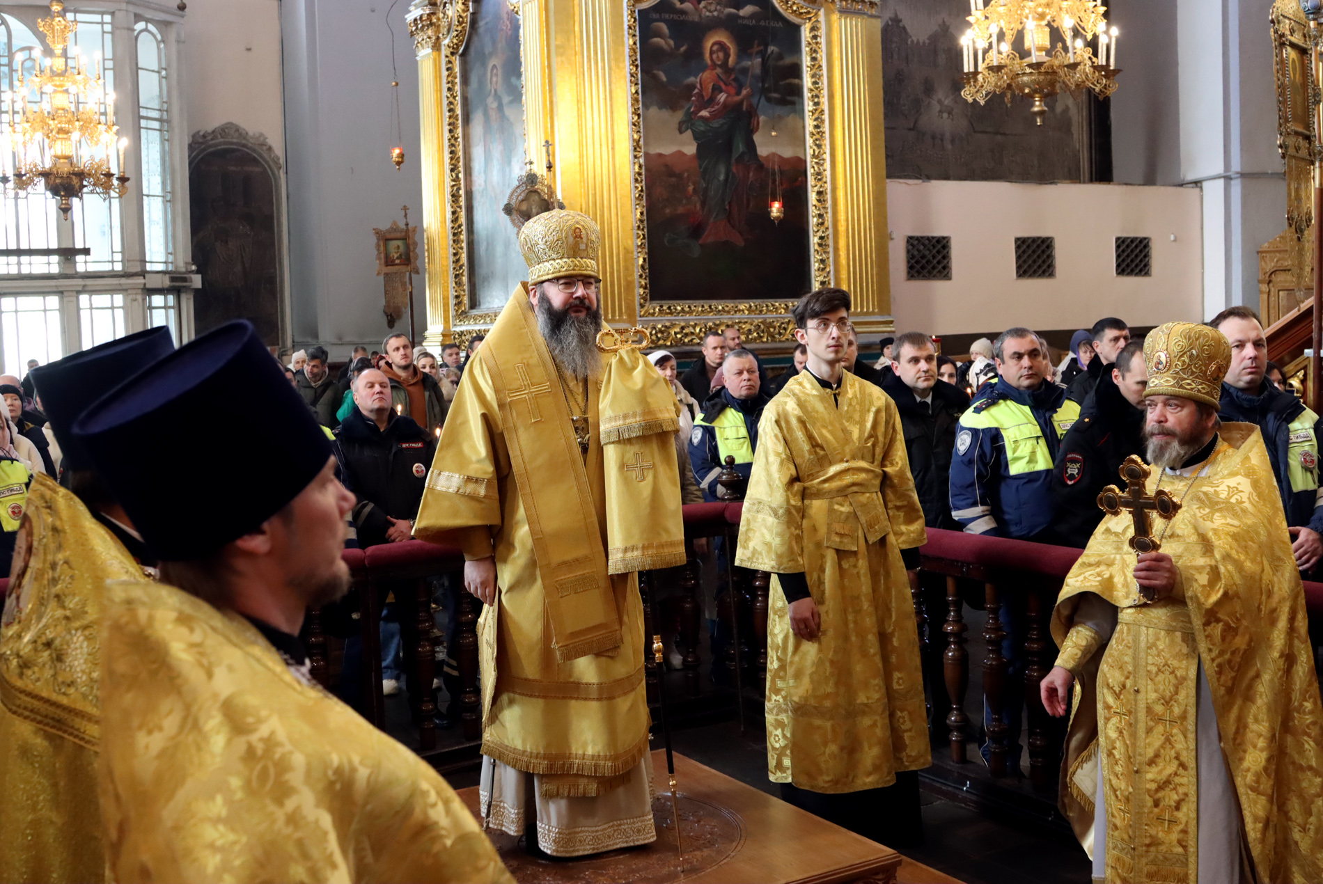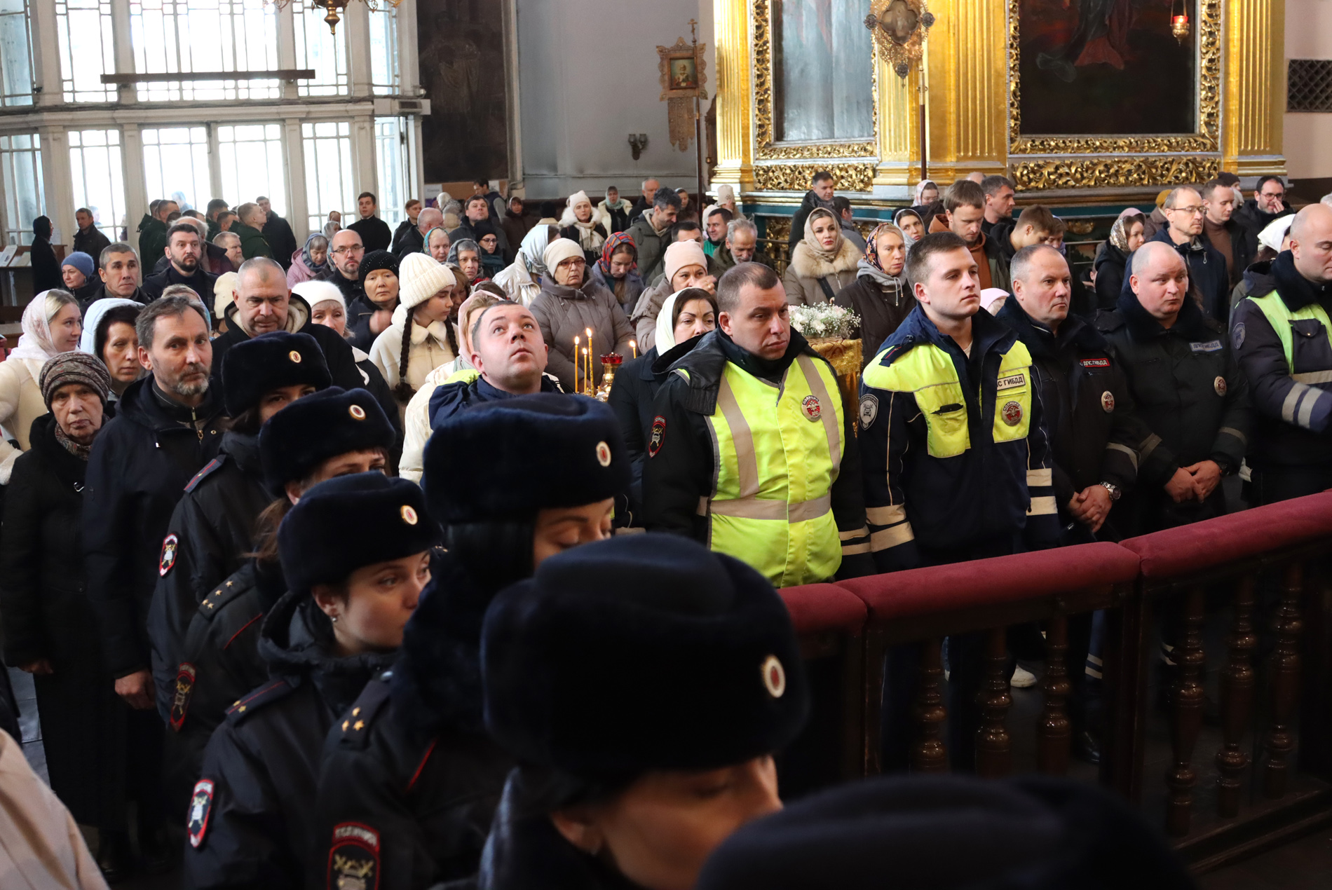 За богослужением молились сотрудники Госавтоинспекции УМВД России по Смоленской области, прихожане кафедрального храма, жители города Смоленска.